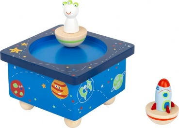 Diese Spieluhr aus Holz im angesagten Weltraum-Design spielt die Melodie "Twinkle Twinkle Little Star", während sich die Rakete und der Außerirdische auf der Tanzfläche zum Klang der Musik umkreisen. Da versinken kleine Astronauten garantiert sofort in schwerelose Träume! Eintauchen in eine andere Galaxie - mit dieser außergewöhnlichen Spieluhr kein Problem! Die Spieluhr besticht durch die niedlichen Details in Weltall-Optik.