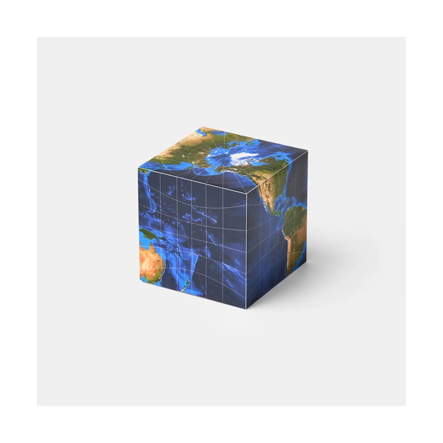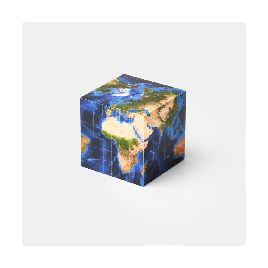 Kartonbausatz für eine physische Weltkarte in Würfelprojektion