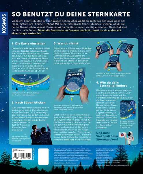 Einfach drehen, Monat und Uhrzeit einstellen und schon zeigt die nachtleuchtende Karte (Damit die Sternkarte im Dunkeln leuchtet, musst du sie vorher mit einer Lampe anstrahlen) den aktuellen Sternenhimmel mit allem, was es dort zu beobachten gibt.